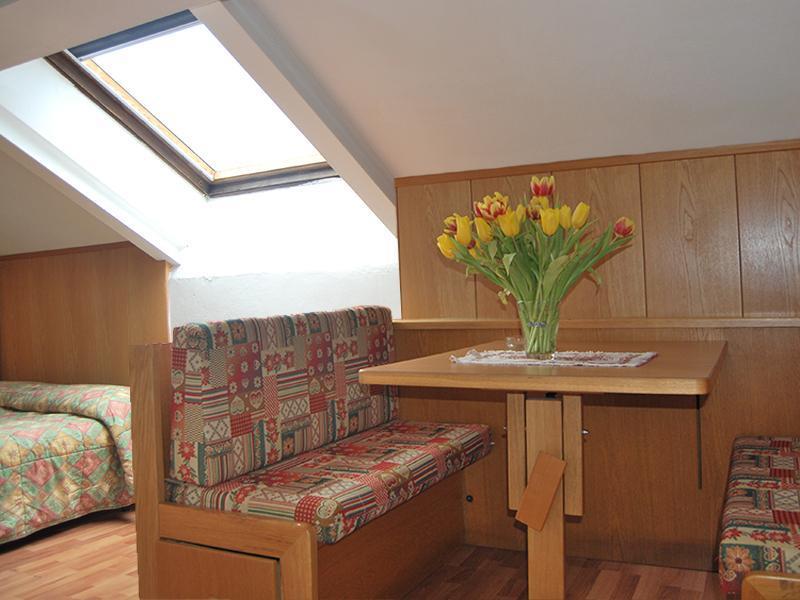 | koupelna, plně vybavený kuchyňský kout, SAT-TV, telefon, trezor, fén, téměř všechny s balkónem MONO 2 mansarda: max 2 osoby, 20 m2, obývací pokoj s kuchyňkou a manželskou postelí, v apartmánu je pouze jedno střešní oknoMONO 3: max 3 osoby, 30 m2, obývací pokoj s kuchyňkou a jedním lůžkem a manželskou postelíMONO 4: max 4 osoby, 30 m2, obývací pokoj s kuchyňkou a jedním nebo dvěma lůžky, manželskou postelí oddělenou dřevěnou stěnouBILO 4: max 4 osoby, 35 m2, obývací pokoj s kuchyňkou a dvěma lůžky, ložnice s manželskou postelí oddělená dřevěnou stěnouTRILO 6: max 6 osob, 45 m2, obývací pokoj s kuchyňkou, ložnice s manželskou postelí a jednou přistýlkou, malý pokoj s palandou a malý pokoj s jedním lůžkemTRILO 6 PLUS: max 6 osob, 48m2 , obývací pokoj s kuchyňkou a dvěmi samostatnými lůžky, ložnice s manželskou postelí, malý pokoj s palandou |